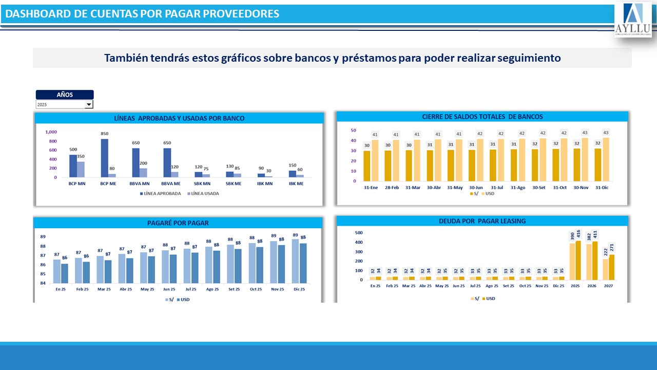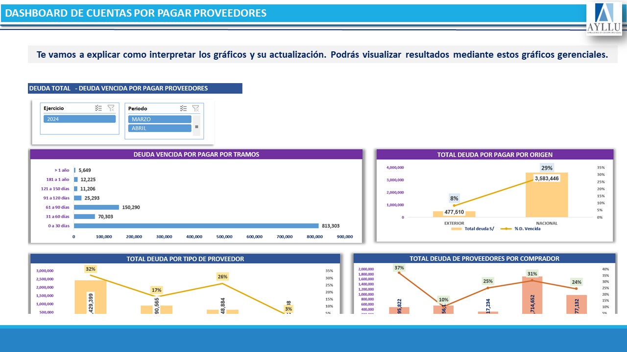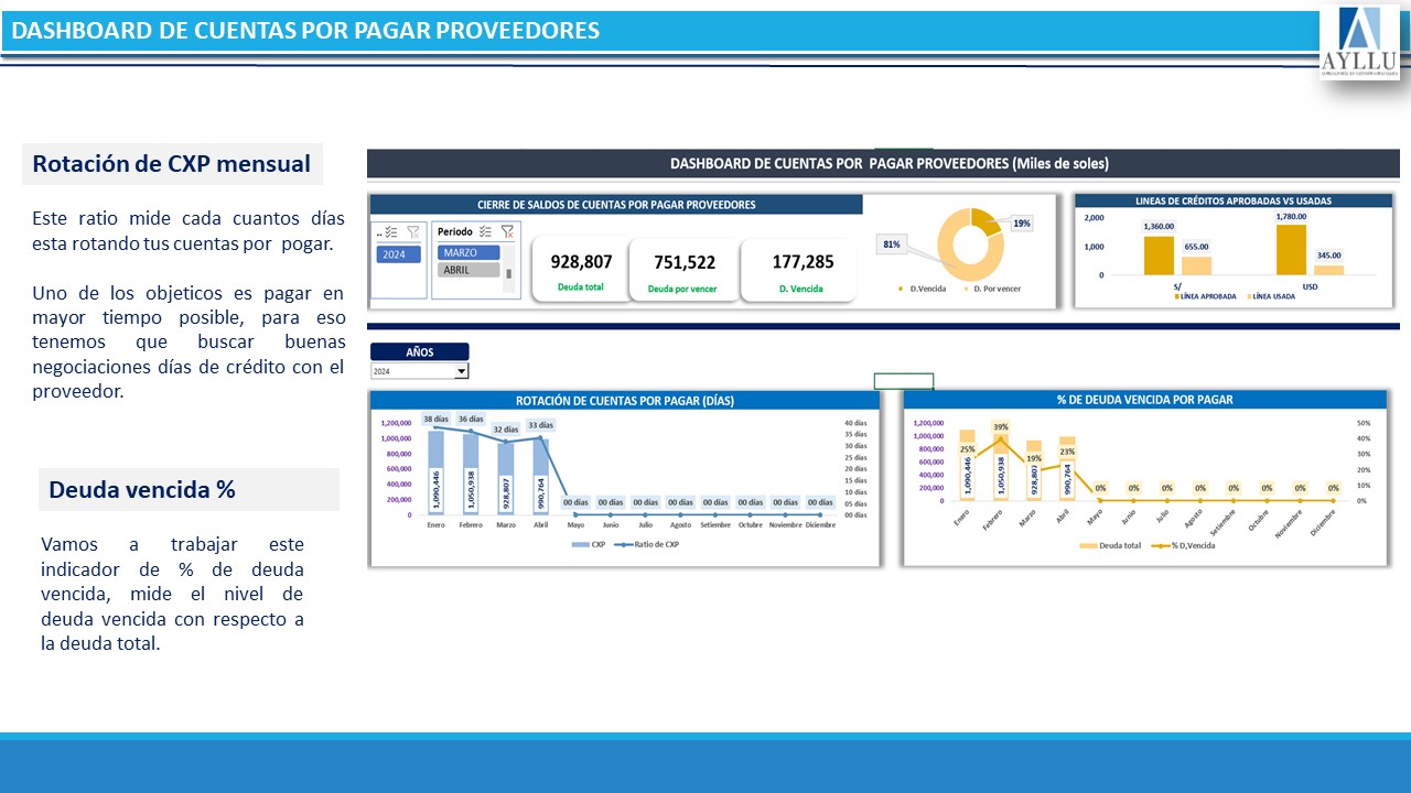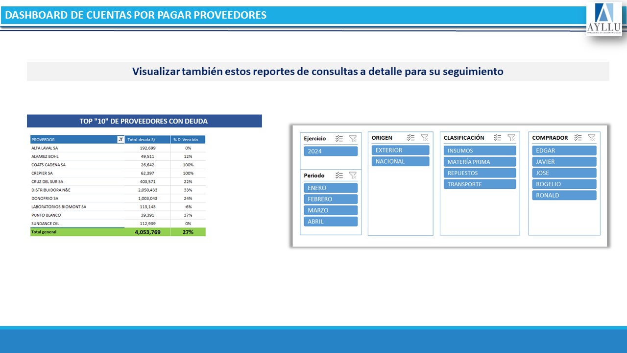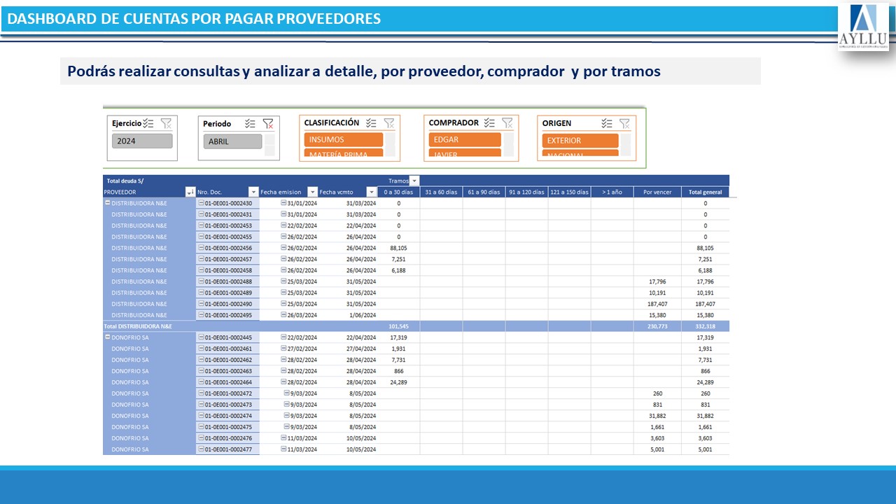 – Dashboard de cierre de mes y control diario de cuentas por pagar proveedores.