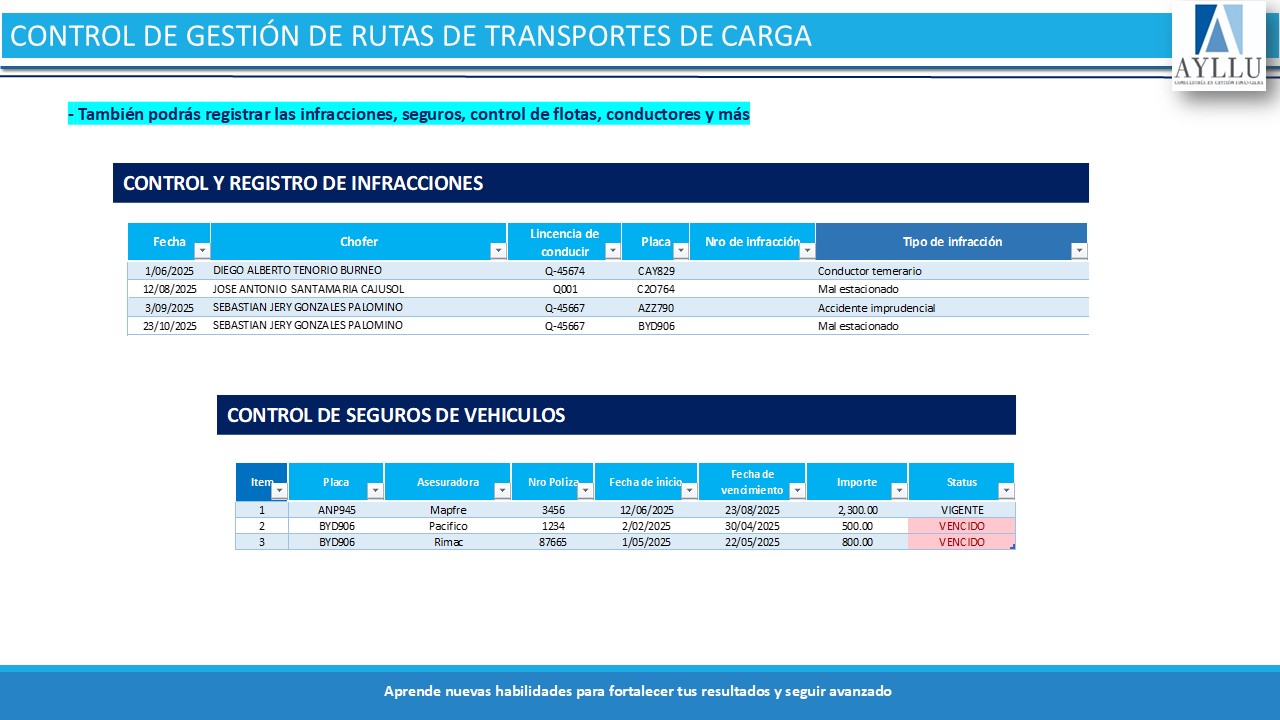 • Adicional tendrás la opción de registrar y controlar infracciones, seguros, flota y conductores