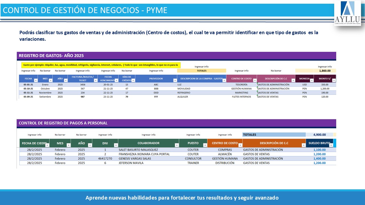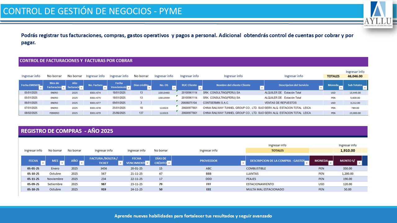 - Podrás registrar todas las compras, gastos que genere tu empresa (Factura, boleta, recibo, ticket con o sin ruc) esto permitirá a obtener un resultado más real.